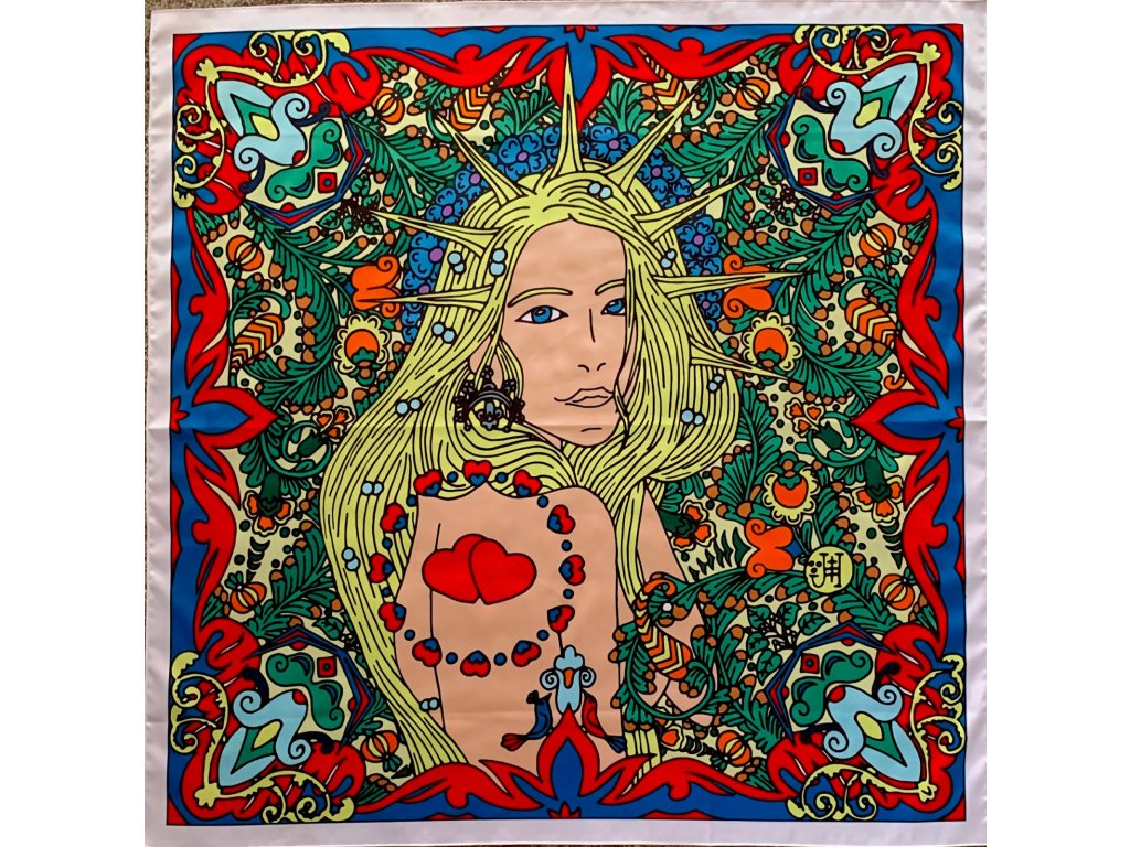 Umělecký šátek inspirovaný bohyní Ladou, slovanským symbolem lásky, krásy a úrody. Design čerpá z historických i folklórních motivů, propojujících ji s Venuší, Létó a Deméter. Precizní tisk zaručuje exkluzivní vzhled i příjemnou nositelnost.